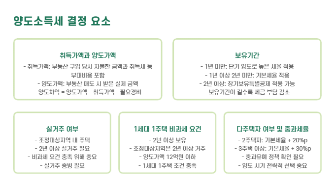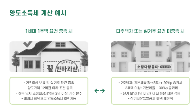 특히 1주택 비과세 요건, 다주택 중과, 보유기간, 실거주 여부 등에 따라 세금 차이가 크기 때문에 사전에 정확한 계산이 꼭 필요합니다.