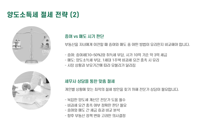 - 시세 상승 전 미리 증여하면 향후 매도 시 세금 절약 가능