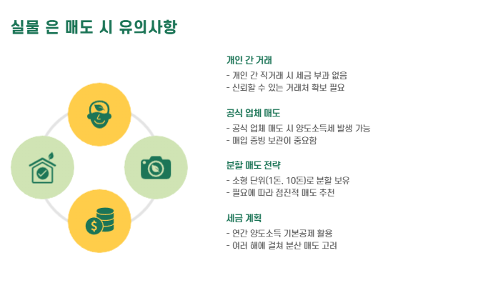 - 공식 업체에 매도 시: 양도소득세 발생 가능성 있음