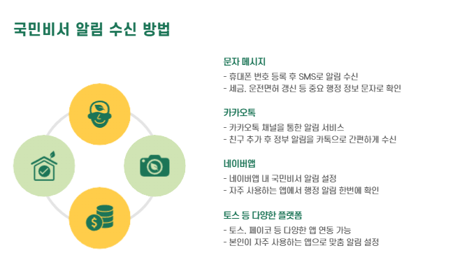 - 정부 알림 서비스 신청 (문자, 카카오톡, 네이버앱, 토스 등으로 수신 가능)